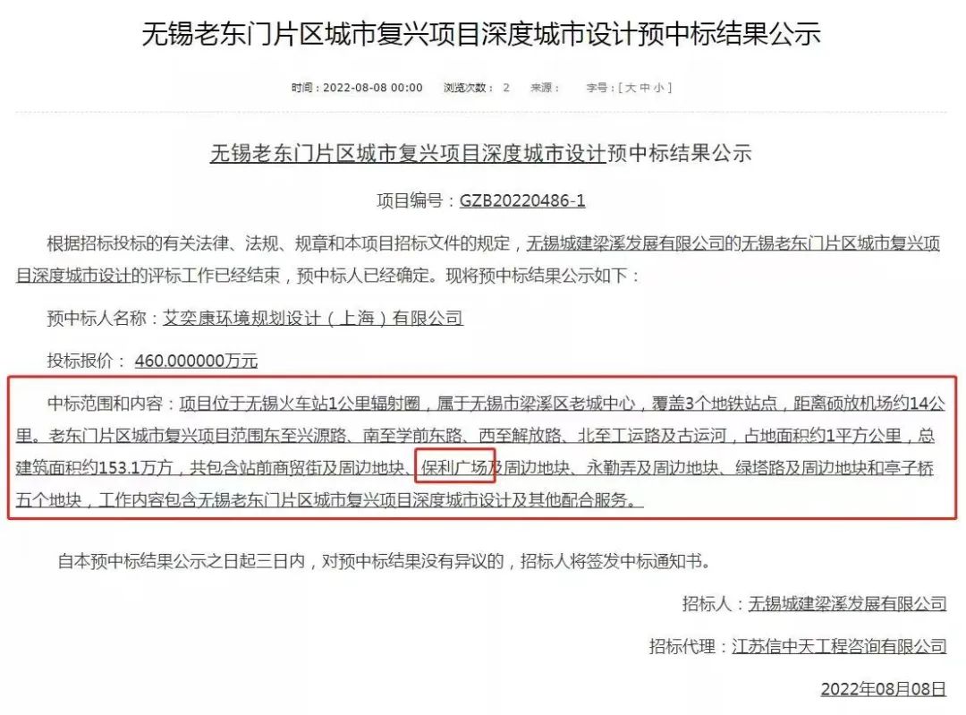2022年,事情迎来转机。无锡老东门片区城市复兴项目公布深度城市设计预中标结果,明确将对该片区包括保利广场进行整体焕新。