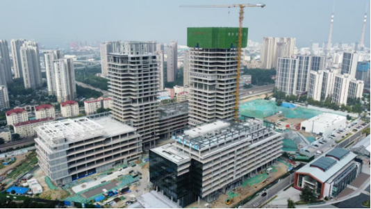 这座位于市北区杭州路16号的省市级重点项目,正以肉眼可见的成熟姿态推进建设收尾,肩负着推动老四方工业区迭代升级的重要使命。106A产业地块总建筑面积约11.7万平方米,其中E座高度约100米;106B产业地块总建筑面积约14.9万平方米,规划建设3栋商业办公楼,其中A座、B座为高层商业办公载体,C塔则以31层、约137米的高度成为区域地标性超高层建筑。